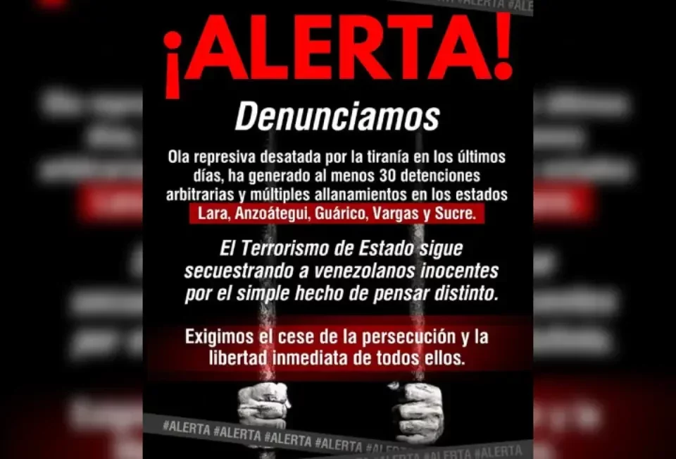 Al menos 30 detenidos en nueva ola de detenciones arbitrarias en Venezuela