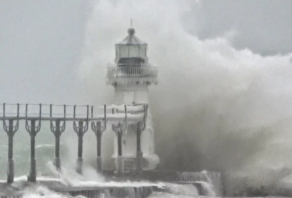 Las imágenes del dron muestran cómo el oleaje impacta la estructura del faro y contribuye a la acumulación de hielo, que recubre completamente la construcción ubicada en la costa del Lago Michigan. Según el Servicio Meteorológico Nacional, las condiciones invernales continúan afectando el área, con especial atención a las áreas próximas al cuerpo de agua, donde se mantiene el riesgo asociado a la tormenta.