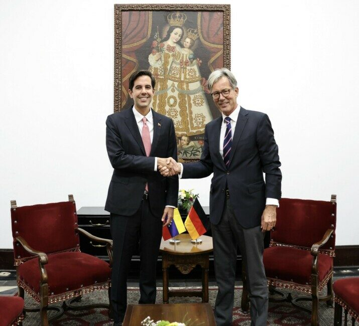 Este viernes, representantes de Venezuela y Alemania mantuvieron conversaciones sobre posibles oportunidades de cooperación en áreas clave como la energía, la cultura y el turismo. El viceministro venezolano para Europa y América del Norte, Oliver Blanco, informó a través de una publicación en X que se reunió con el embajador de Alemania en Venezuela, Volker Pellet.
