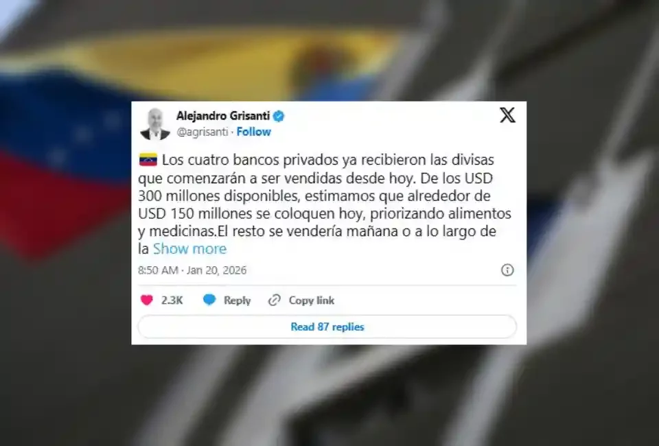 Cuatro bancos privados inician venta de USD 300 millones para alimentos y medicinas en Venezuela