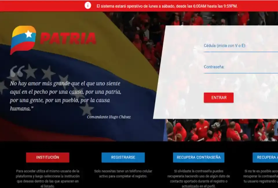 Para retirar el pago a través de la Plataforma Patria, los usuarios deben iniciar sesión en el Sistema Patria, pulsar en la opción “monedero” y luego en “retiro de fondos”. Posteriormente, deben seleccionar el monedero de origen, el monto y el destino de los fondos, oprimir el botón de “continuar” y después en “aceptar”.