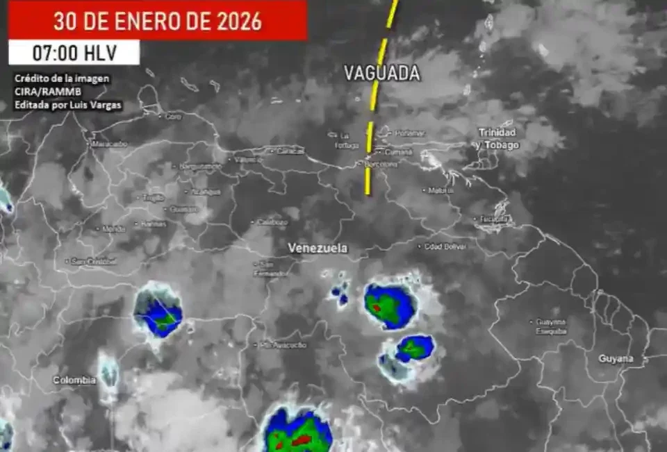 Una vaguada corta ubicada al noreste de Venezuela está favoreciendo la formación de nubosidad y precipitaciones de distinta intensidad en varias regiones del territorio nacional, con presencia de lluvias, chubascos y descargas eléctricas en zonas específicas, según informó el meteorólogo Luis Vargas.