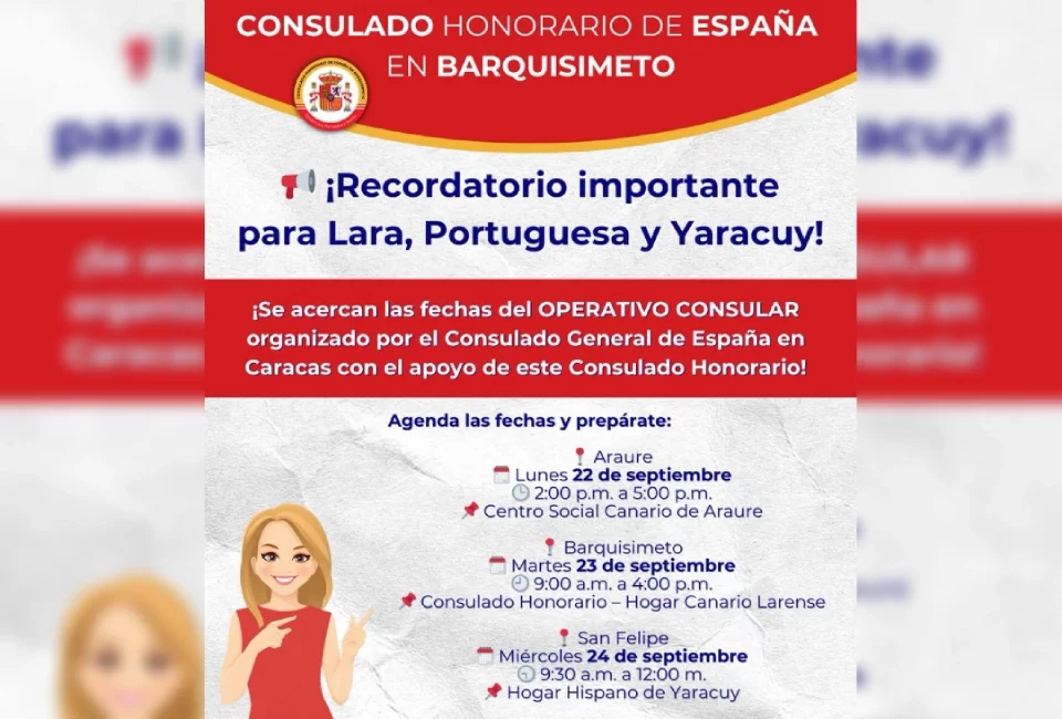 El Consulado Honorario de España en Barquisimeto organiza Operativo Consular en Portuguesa, Lara y Yaracuy