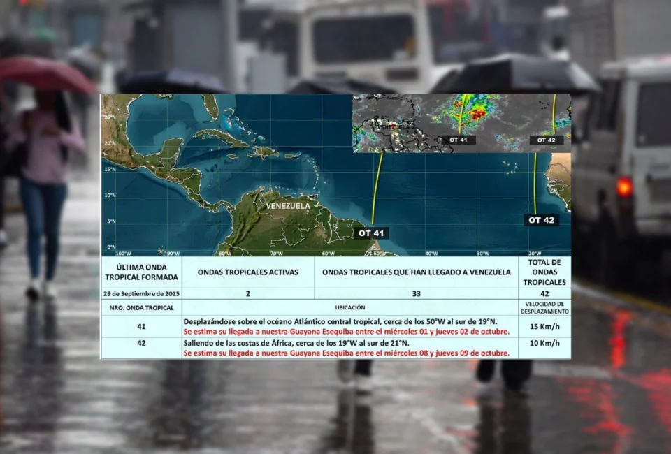 Cuatro ondas tropicales en el Atlántico podrían aumentar las lluvias en Venezuela este fin de semana